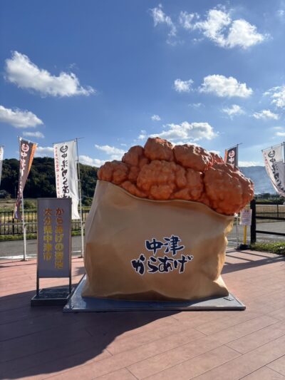 帰りに寄った道の駅なかつに、からあげモニュメントができていました。
